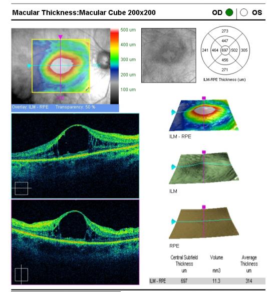 46 yo white female with family history of Autosomal Dominant Retinitis Pigmentosa with vision of 20/200 OU, who has been treated with numerous subtenon's kenalog injections and Diamox 500 PO BID and Nevanac TID without apparant response.